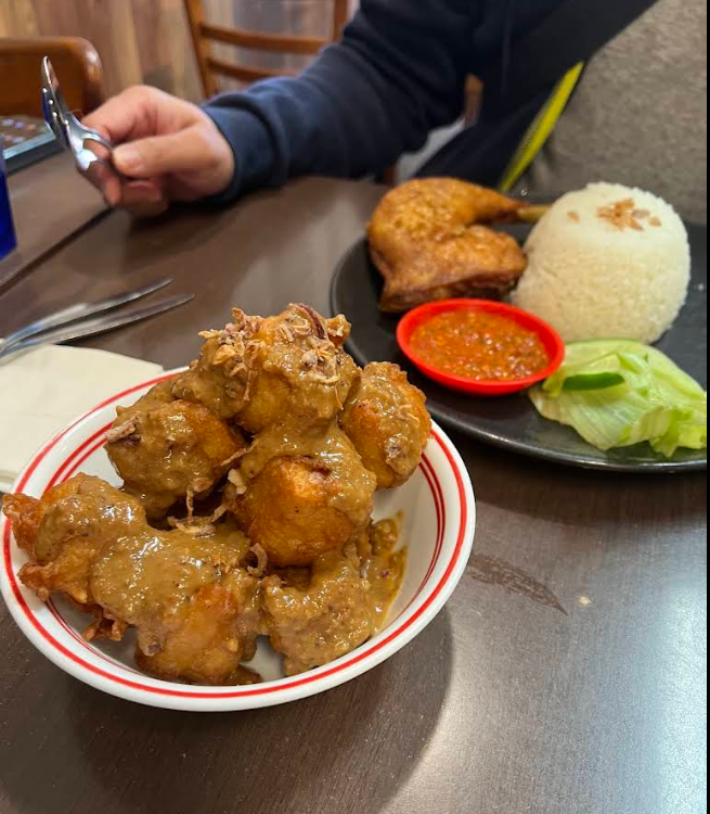 halal indonesian cuisine. i think the fried chicken is better than the grilled chicken. the rujak is a sweet sauce with zero spice, and the balinese has a veryyyyy slight spice. always eat it with the sweet soy sauce provided on the table. iced water is free, self service. been here quite a few times already. places are a bit limited so if ur a big group on peak hour might be hard to get a seat.