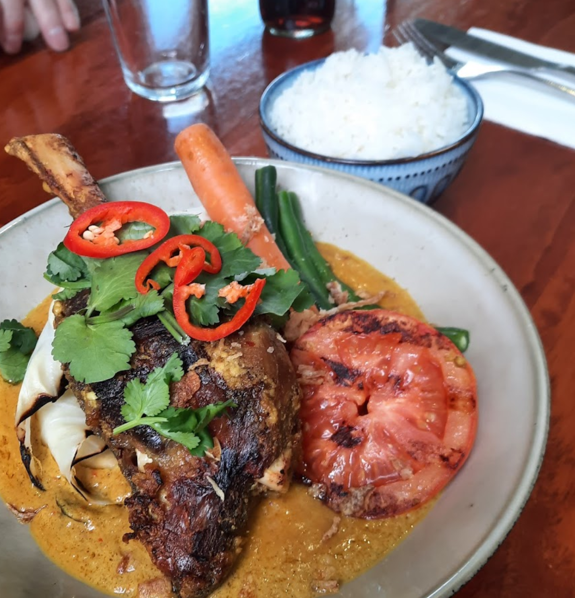 I was very impressed with everything. I didnt expect much, but the venue looks pretty nice, lots of tables outside near the trees, it would have been nice sitting outside. Inside is spacious, and you can see they have function room that looks pretty good too. Staff are nice. Their menu has Western and Asian dishes. I went with fried chicken Maryland with tofu and sambal and rice. It was very nice! Chicken was pretty big. Nice and crispy and tasty. Sambal was good amount of spicy for me. The chili chicken avo sandwich was nice too. Lychee lemonade was quite nice. Good value meals and tasty!