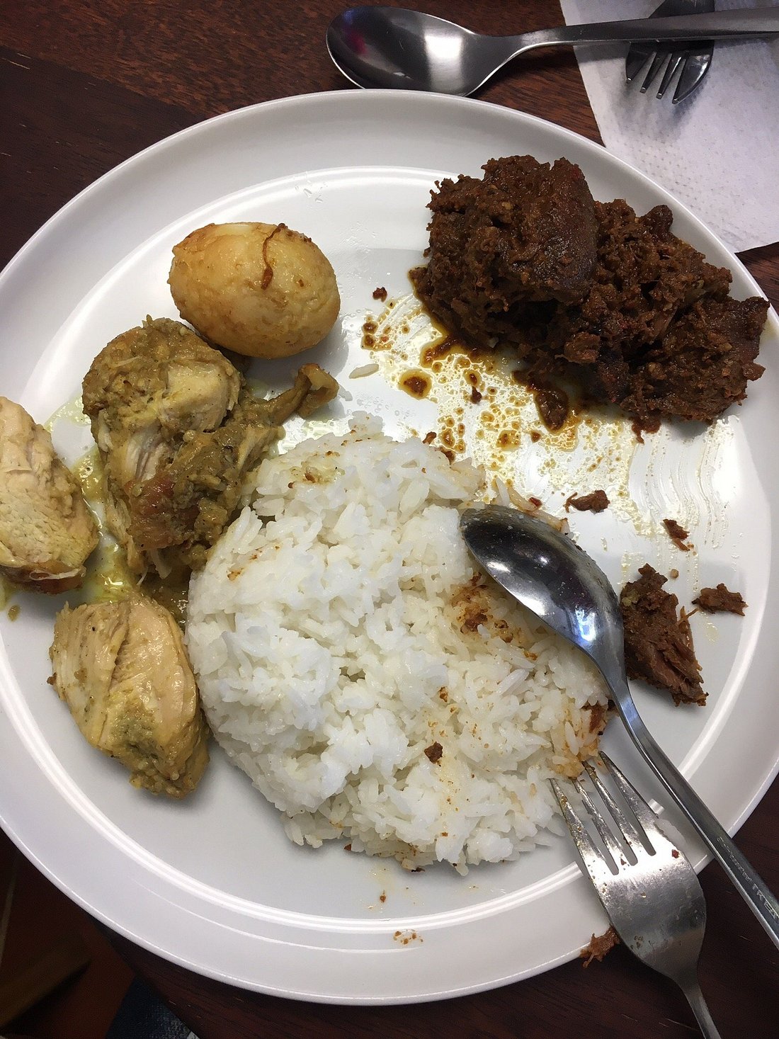 Had the beef rendang, jackfruit curry and sambal. Loved everybit. For the drinks I had the famous teh kotak!