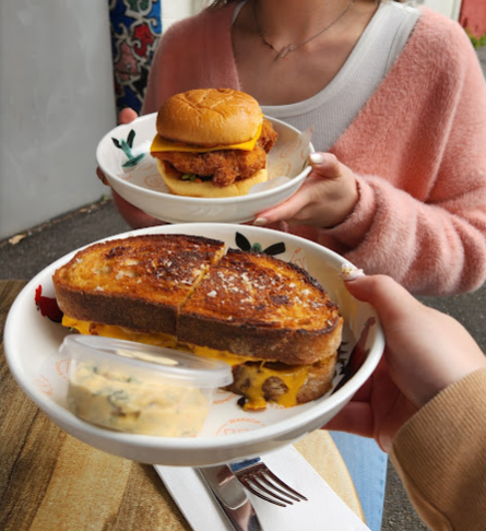 such a hidden gem! came here for lunch and it was so lovely to sit in the sun. i had the vegan mushroom melt and my friend had the chicken satay. both were delicious! the service was really great and fast. i also really appreciate how the vegan option had vegan cheese + nuttelex. the flavours are super unique and the sandwiches are well priced. will definitely be returning!