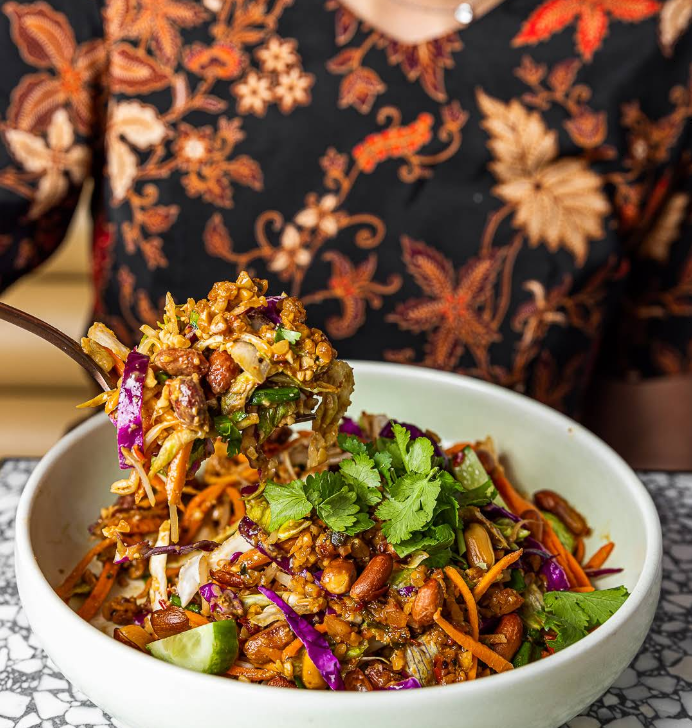 I recently had my first dinner at a Balinese restaurant and it was a great experience! We started with the Balinese peanut salad, which was very tasty. It came with fresh lettuce and cabbage, and the mix of sweet and crunchy textures made it really enjoyable. For the main dish, we had the Balinese Taliwang chicken. It was perfectly crispy and paired beautifully with the sauce flavorful and well-balanced. Overall, the food was delicious, and I’m looking forward to trying more dishes next time!